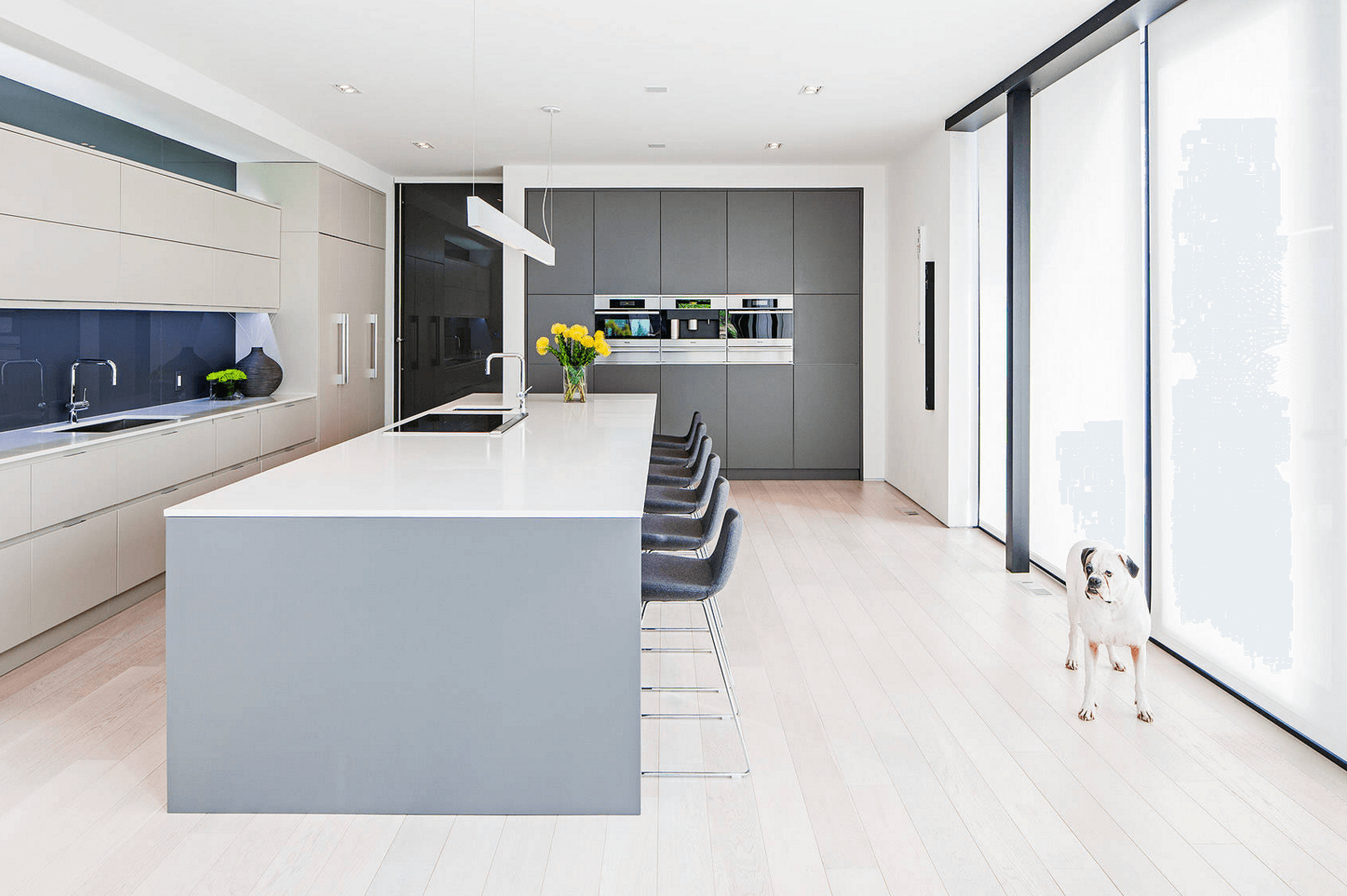Кухонный гарнитур призван поддерживать безупречный порядок, он должен быть подобран таким образом, чтобы вся кухонная утварь была скрыта от посторонних глаз. Если предполагается встроенная мебель, стены и шкафы должны сливаться в единой плоскости. То же самое можно сказать и об угловых вариантах. За глянцевыми фасадами должна быть спрятана вся бытовая техника. Ручки в таких шкафчиках преимущественно скрытые, а дверцы открываются при нажатии.