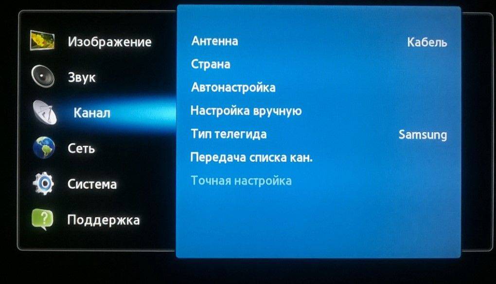 В настройках выберите источник сигнала – кабель или антенна – и начните автопоиск либо быстрый поиск каналов. Иногда пункт называется «Сканирование».