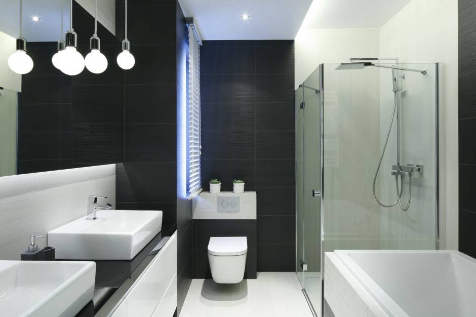 Ванна с душевой кабиной и тропическим душем может выглядеть роскошно, строго и даже традиционно. Многое зависит от стиля, в котором вы собираетесь оформить ванную комнату. Аналогично будет и в случае с цветами. Черные ванны с душем становятся все более популярными. Как видите, белый цвет не всегда должен быть доминирующим оттенком в ванной комнате.