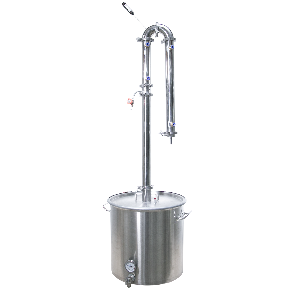 Надежный, долговечный аппарат с функциональностью небольшого спиртзавода. Может дополняться царгой в 50 см, насадкой Панченкова, насосом для автономного охлаждения и сухопарником для ароматизации продукта.
