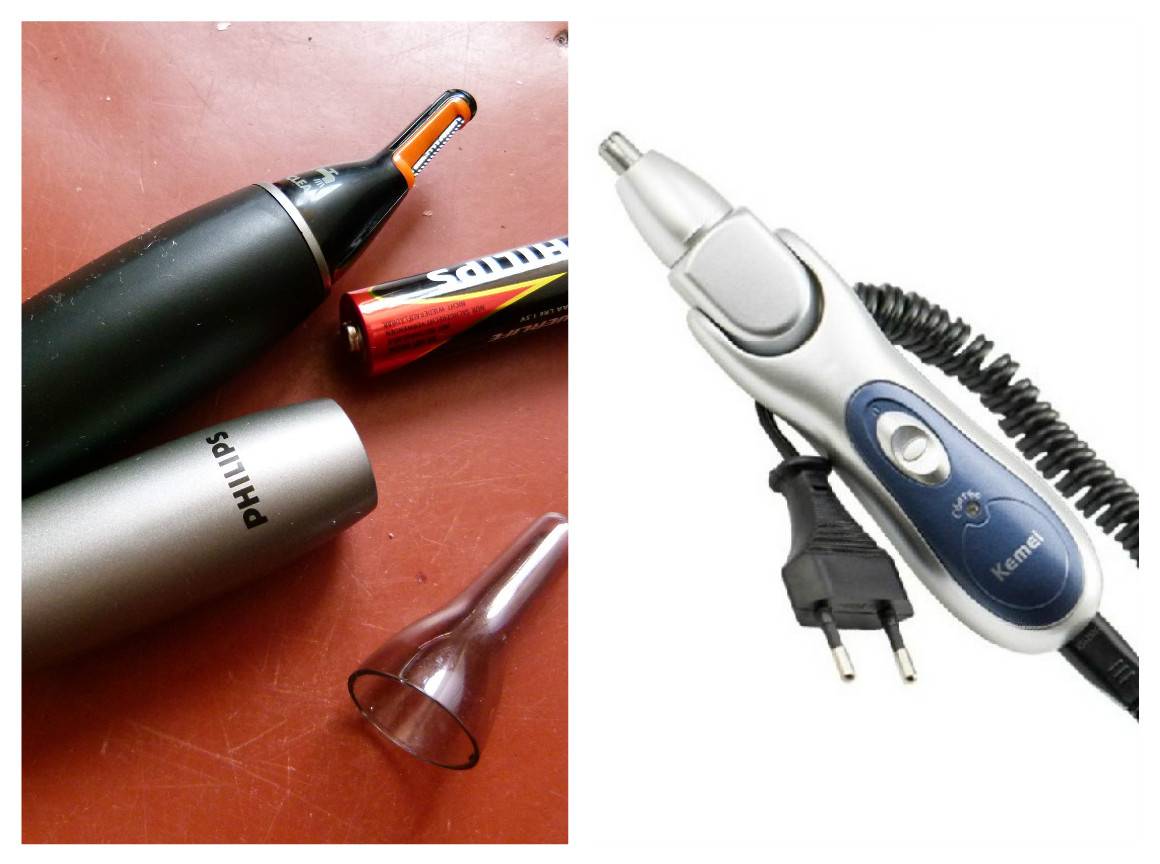 - На батарейках продаются более дешевые и слабомощные аналоги, которых, конечно, хватит для стрижки ушей и носа, однако длительность беспрерывного использования намного меньше.