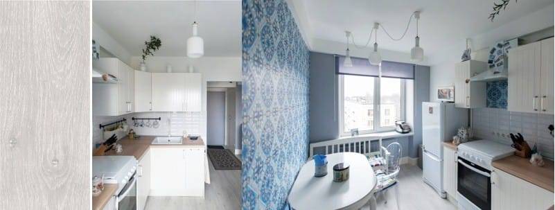 Как вариант, можно скомбинировать покрытия, сделав отделку плиткой только вблизи кухонных шкафов.