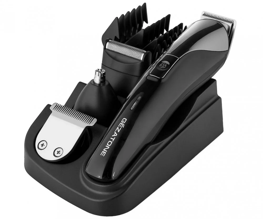 - Универсальные машинки с набором различных насадок могут работать и как триммер для удаления подросшей щетины, и для состригания растительности на затылке, висках, подравнивания прически.