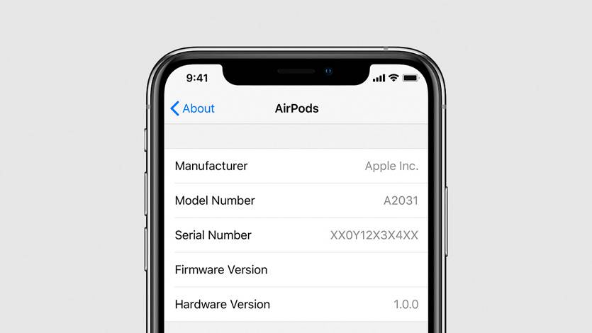 Когда наушники подключены к iPhone, их номер модели можно найти в меню «Настройки» > «Основные» > «Об этом устройстве» > AirPods — здесь же есть их серийный номер и версия прошивки.