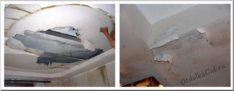 С потолками из гипсокартона дело обстоит несколько проще: их можно ремонтировать, причем ремонт может быть как косметический, так и капитальный, с полной заменой обшивки.