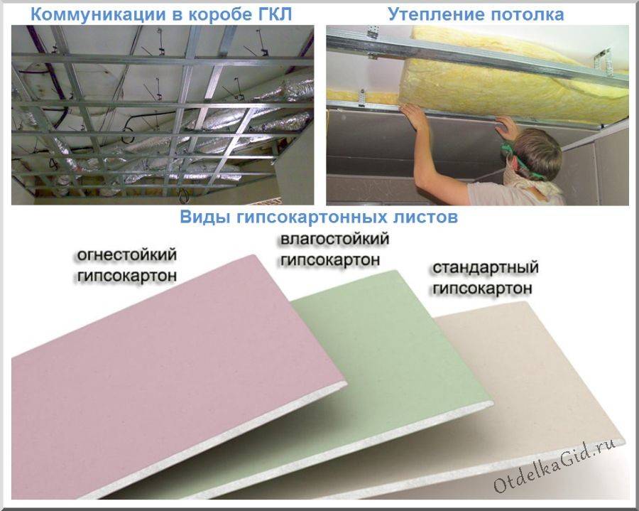 Существует несколько разновидностей ГКЛ, которые обладают дополнительной влаго- и огнестойкостью, что позволяет подбирать вариант для конкретного помещения.
