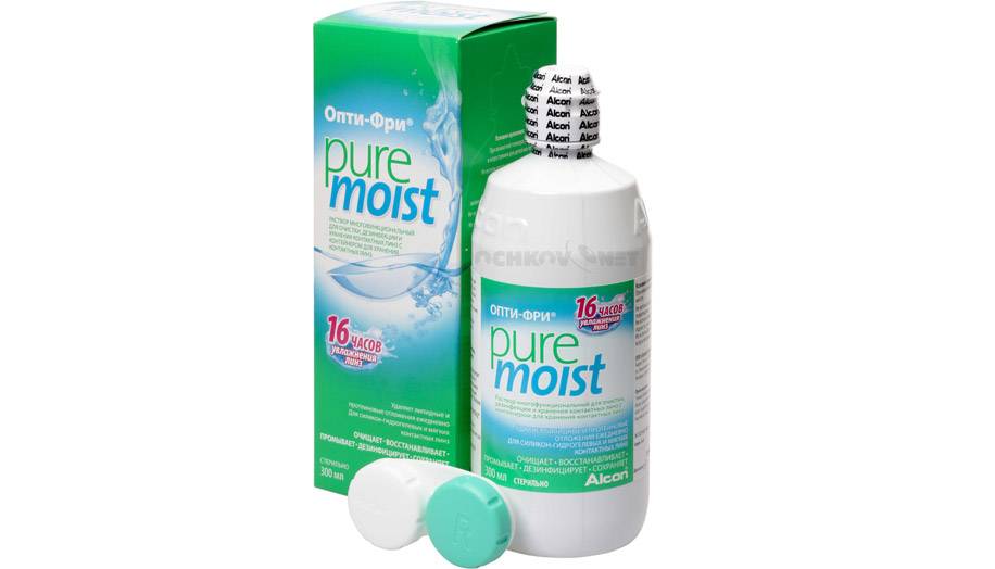 Opti-Free Pure Moist — разработка американской компании Alcon. В раствор включен увлажняющий агент HydraGlyde Moisture Matrix. Линзы после обработки такой жидкостью остаются максимально увлажненными не менее 16 часов. Opti-Free Pure Moist — это многоступенчатая система дезинфекции. Микробы и бактерии уничтожаются на каждом этапе обработки офтальмологических изделий. На протяжении всего дня они остаются свежими, чистыми и увлажненными.