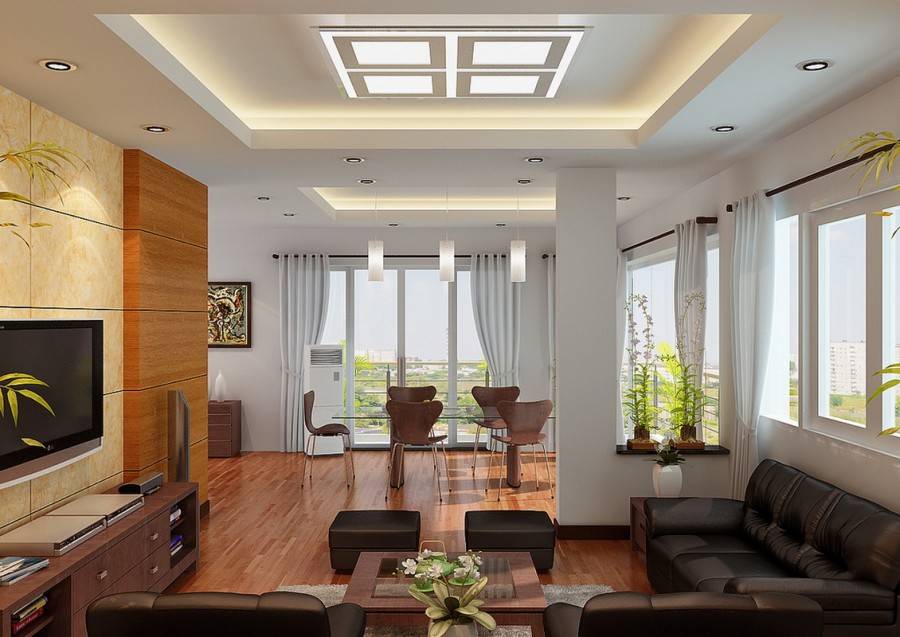 - В гостиных. Теплое освещение придаст обстановке непринужденность и легкость, снимет психологическое напряжение у гостей и хозяев квартиры. Рассеивающая люстра в этой комнате станет идеальным решением.