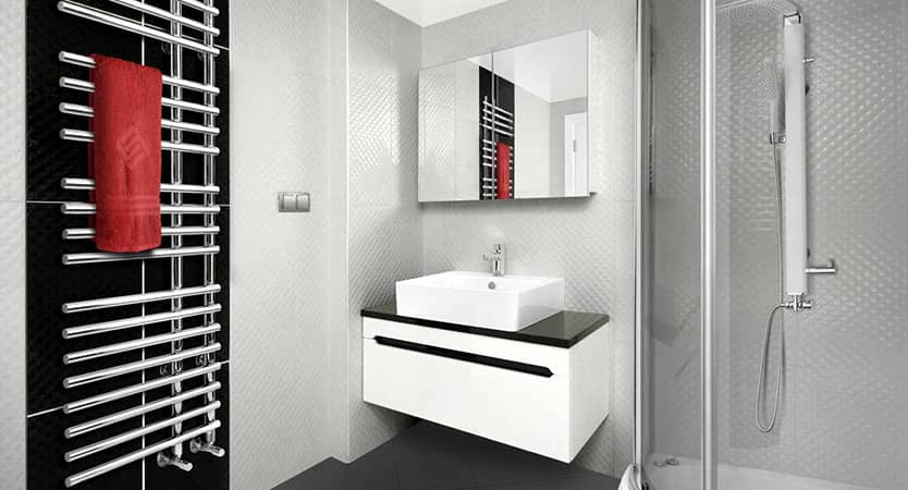 Большой популярностью пользуются также винтажные модели с многочисленными орнаментами или специально состаренные под старину. Вы также можете приспособить полотенцесушители к членам семьи, чтобы у каждого был такой, который соответствует вкусам. Благодаря этому каждый всегда будет знать, куда повесить полотенце после купания. Выбирая полотенцесушитель, сочетайте его с цветом остальной техники. Благодаря этому весь интерьер будет выдержанным и эстетичным. Если вы не можете подобрать подходящий оттенок, можно выбрать полотенцесушитель нейтрального черного или белого цвета. Благодаря этому он не будет выделяться на фоне других предметов.