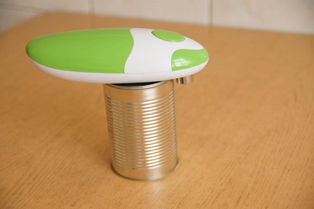 - Портативная автоматическая открывалка для консервных банок, работающая от батареек. Такой прибор удобно использовать в дачных и походных условиях.