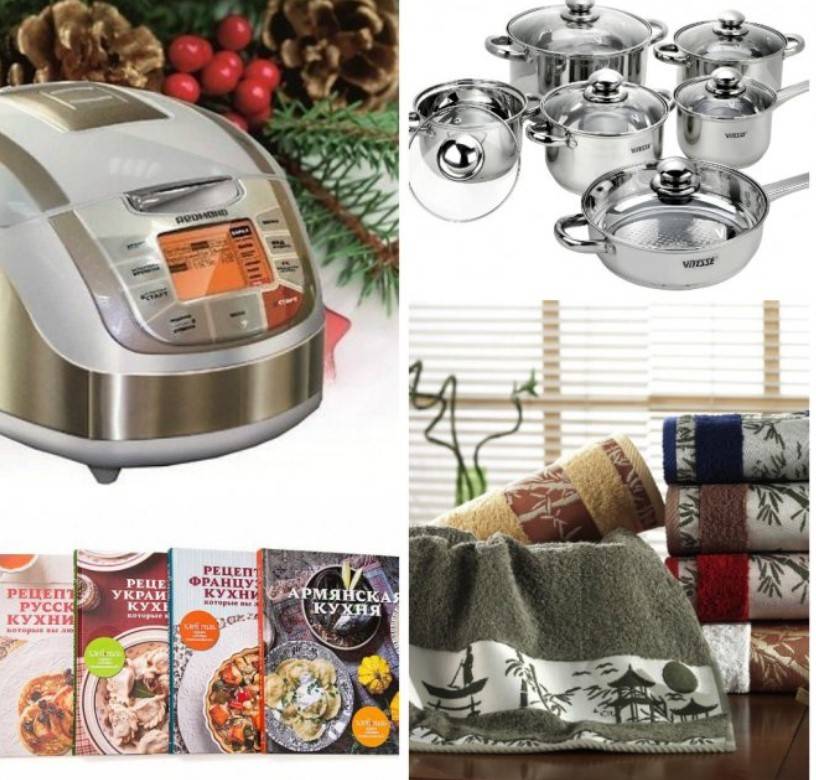 Так же можно купить кухонные принадлежности, это всегда нужные в хозяйстве помощники. Например, микроволновка, мультиварка, кофеварка и многое другое.