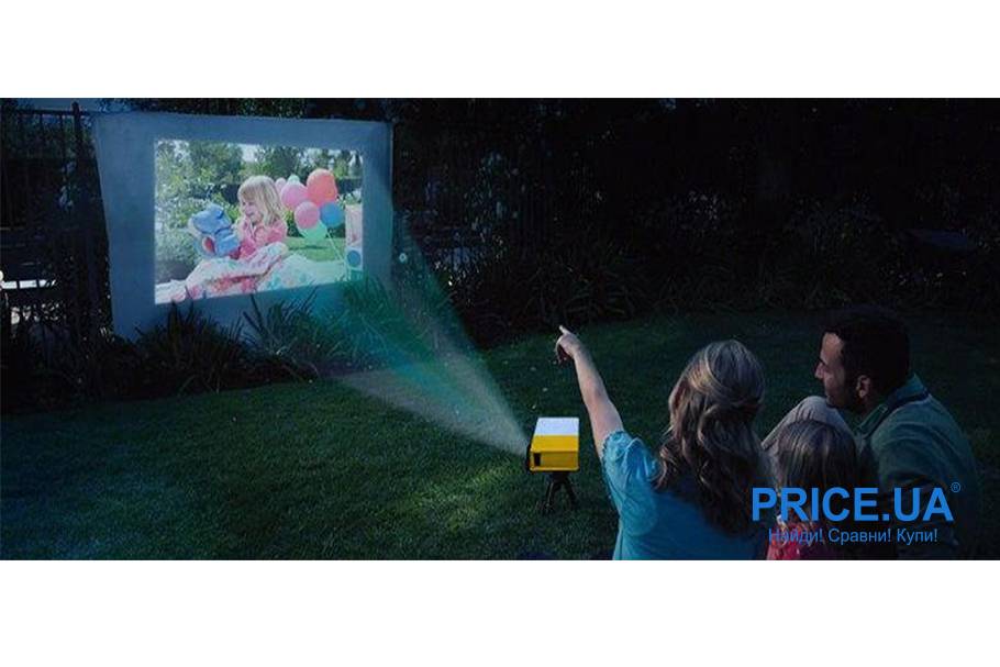 Небольшой компактный проектор с батарейкой, обеспечивающей не менее 1-1.5 часов непрерывной работы на максимальной яркости, что позволяет демонстрировать презентации, не беспокоясь о наличии розетки, или развлечь детей мультиками на даче, где отключили электричество.