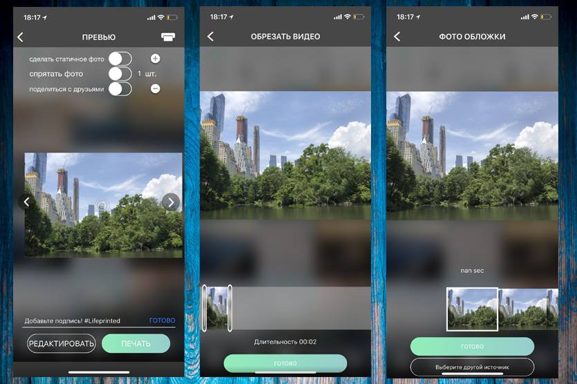 Для создания «Гиперфото» нужно выбрать соответствующий пункт в мобильном приложении Lifeprint в процессе выбора фотографии для распечатки. Приложение предложит отредактировать длину видео, а также изменить статическое изображение, которое и будет распечатано.