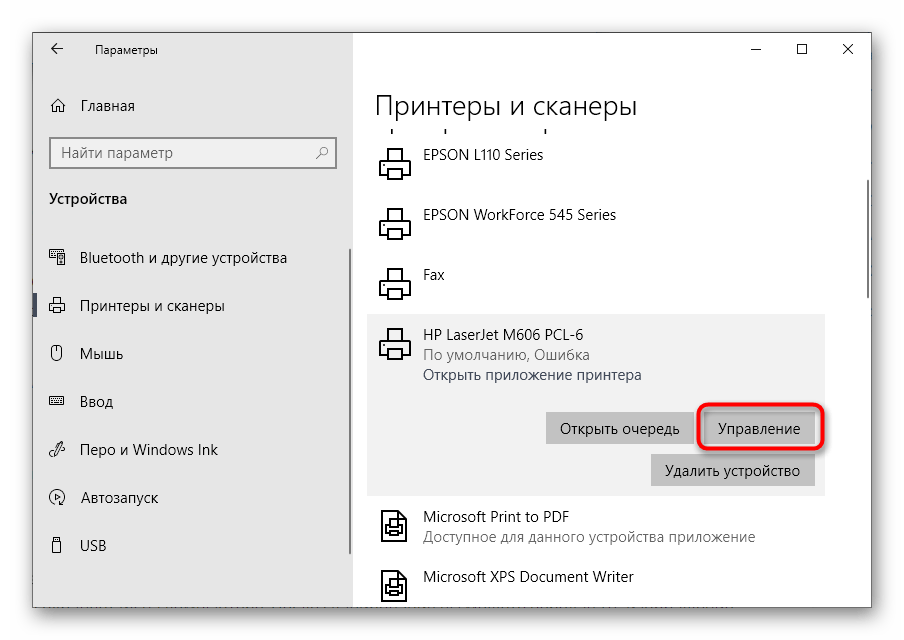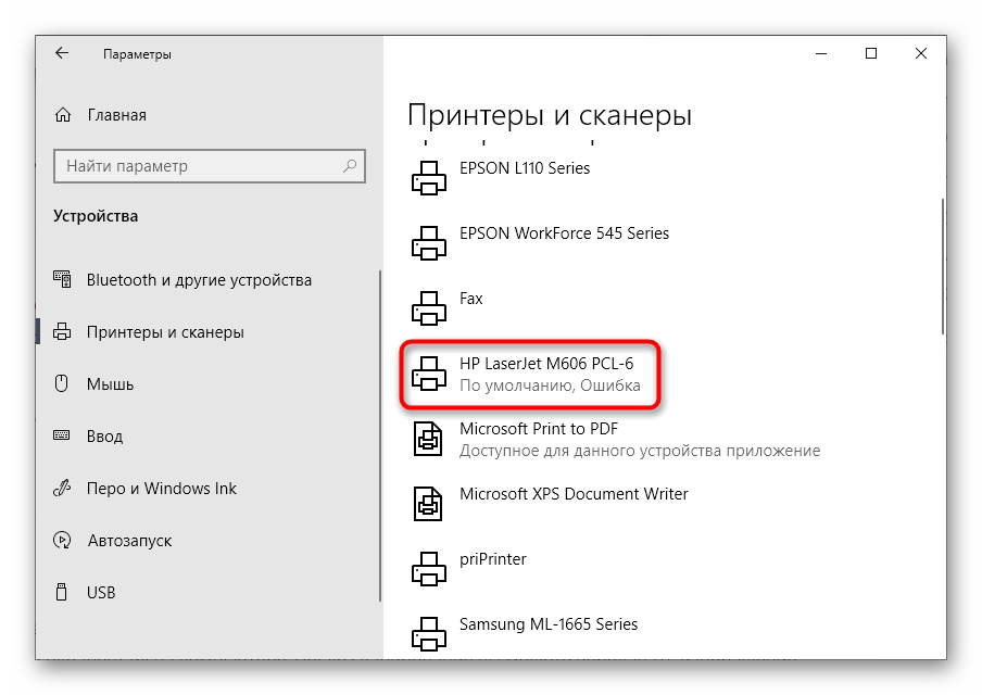 Через панель слева переместитесь к категории «Принтеры и сканеры».