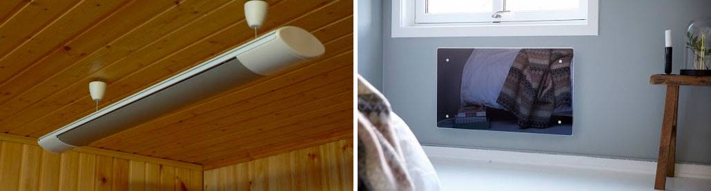 Потолочные обогреватели, наоборот, охватывают большое пространство. ИК излучение разогревает пол и предметы внизу, которые потом отдают тепло.