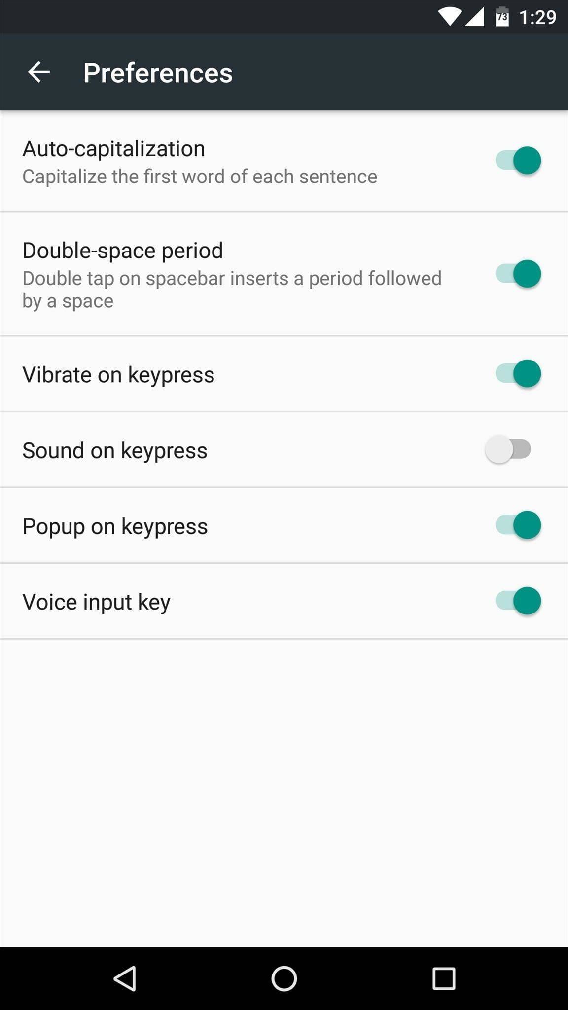 Относительно недостатков, можно сказать, что ими могут быть и сильные стороны Google Клавиатуры — смотря с какой стороны посмотреть. Девизу «установи и работай», которого придерживаются разработчики этого приложения, не все будут рады, из-за того, что у клавиатуры очень мало индивидуальных настроек. Хотя — в последнем обновлении добавлено несколько таких опций, включая цветовые темы.