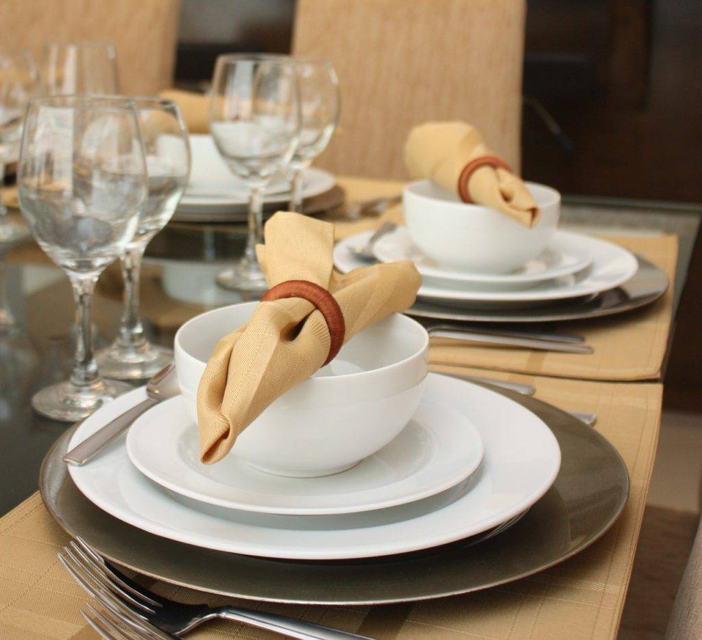 Если хозяйка отдает предпочтение матерчатым салфеткам, рекомендуется выбирать с плотной текстурой – хлопок, лен, вискоза. Такие варианты хорошо держат заданную форму, не сильно мнутся, потому выглядят очень гармонично и солидно.