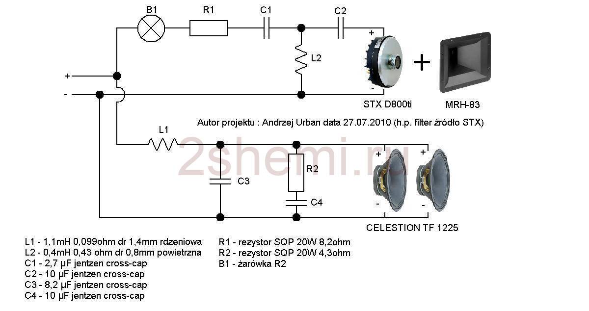 Конденсатор и катушка крепятся к кронштейну, который, в свою очередь, крепится к динамикам.