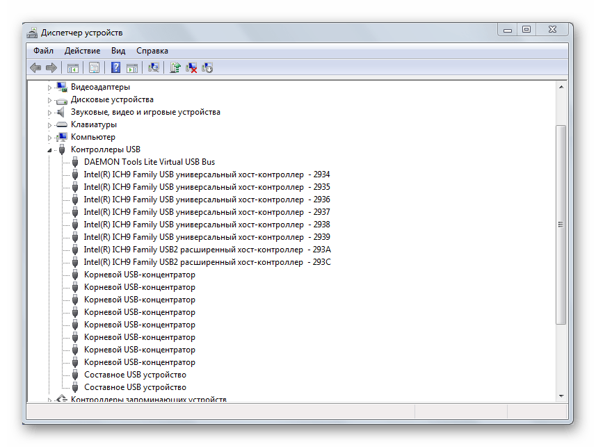 Теперь вам необходимо найти вкладку «Контроллеры USB» и раскрыть ее.