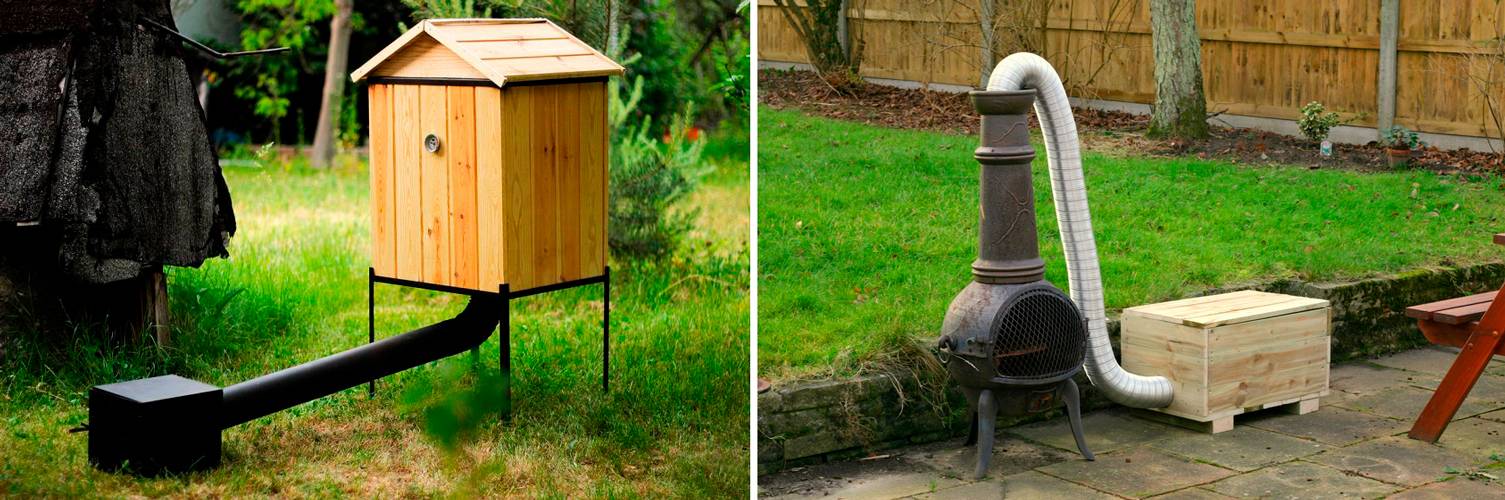 В отличие от устройства для горячего копчения, изготовление холодной коптильни потребует больше сил. Принцип действия такой конструкции заключается в том, что источник дыма находится снаружи. Также потребуется обустройство дымогенератора. В отличие от корпуса, его лучше приобрести уже в готовом виде. Дымогенератор необходим для того, чтобы можно было отрегулировать температуру дыма и автоматизировать процесс его подачи, а также существенно сэкономить на материале. При самостоятельном конструировании элемента потребуется емкость для щепы, электронагреватель, система патрубков и компрессор.