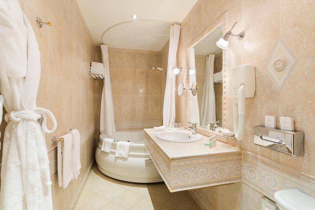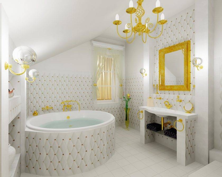 И это не означает, что в таких ванных должны присутствовать колоны, огромные люстры с драгоценными камнями, лепнина, мраморные полы и много золотых аксессуаров.