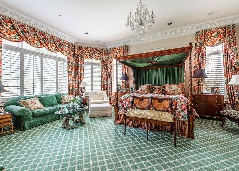 В великолепной резиденции, находящейся в Торонто, удачно реализован элегантный проект от Heintzman Sanborn. Классический полог, изготовленный по его эскизам, замечательно украшает спальню. От его вида невозможно оторвать взгляд, настолько он привлекателен своей нарочитой небрежностью, мягкими складками ниспадая до самого пола.