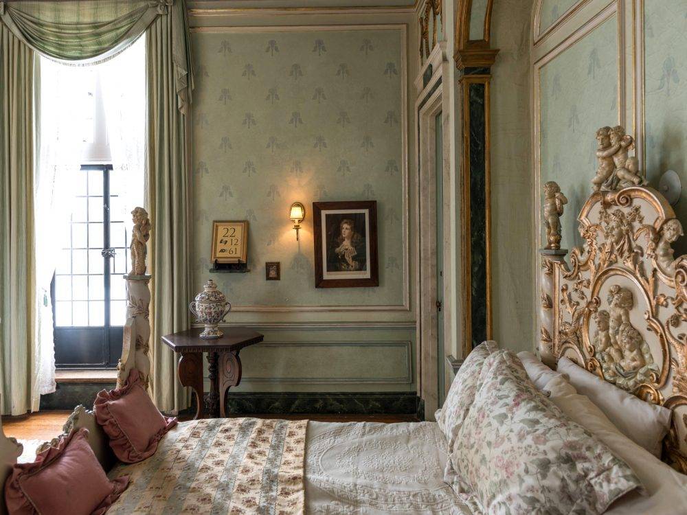 Огромное ложе — три метра шириной и, как говорят, умещающее на себе четыре пары (выставлено в Victoria and Albert Museum), благодаря балдахину приобретает новые формы и размеры. Навесы добавлены к нему для создания иллюзии объёма, они просто ломают монотонность декора комнаты, как сделано в архитектуре Fabrizia Frezza, пример выше.