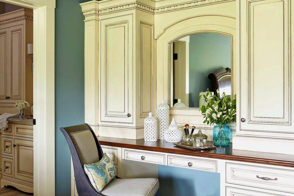 Туалетный столик с зеркалом является неотъемлемой частью интерьера спальни в классическом стиле