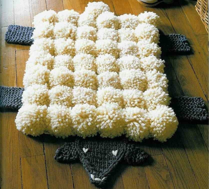 Коврик из помпонов из пряжи