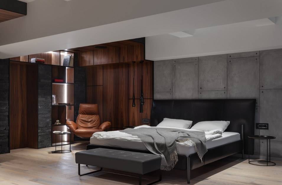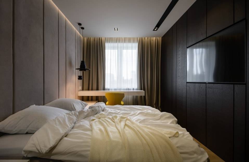 Современная спальня должна представлять собой светлое и уютное помещение для отдыха, желательно с большими окнами и хорошим освещением, которое хоть и разделяется на уютные уголки, выполняющие различные задачи, например, зону отдыха и туалетного столика, в целом остаётся открытым. Любые системы хранения рекомендуется умело маскировать за красивыми дверцами шкафов-купе или зеркальными фасадами. В отделке следует использовать натуральную ткань и качественную древесину