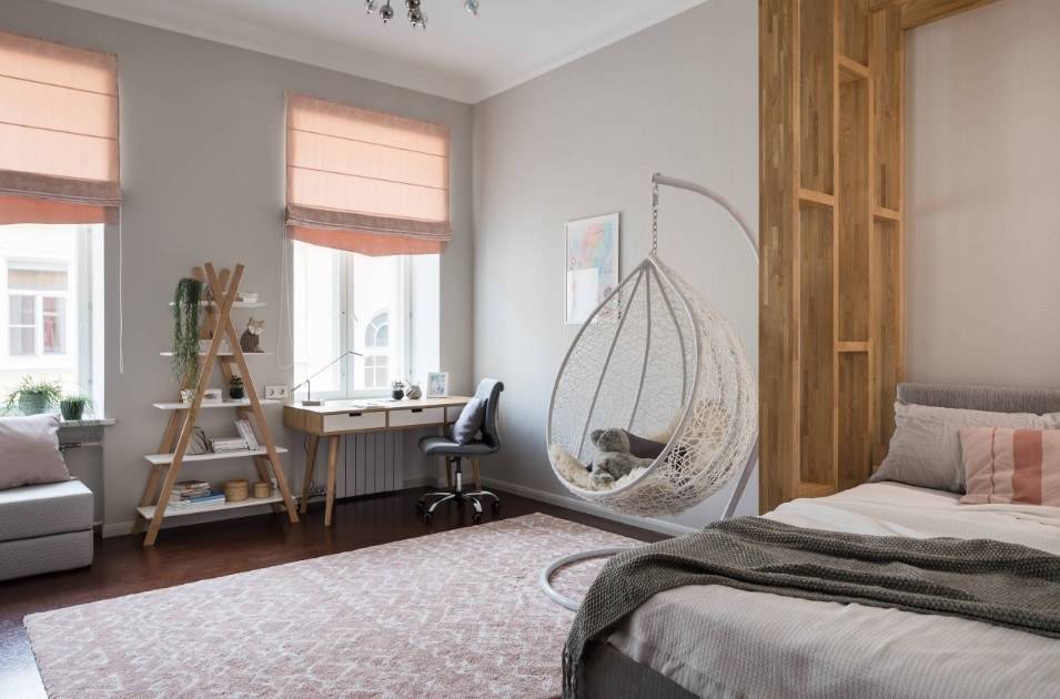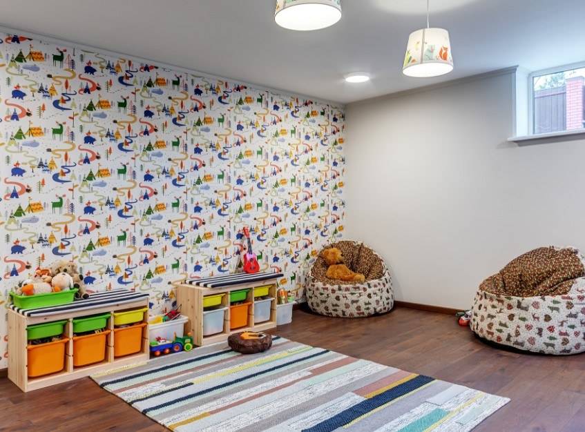 Как мы уже упоминали выше, во главе этого интерьера стоит экологичность, поэтому при оформлении эко детской категорично отказываемся от синтетических материалов и пластика. Цветовое исполнение – нейтральные или спокойные оттенки с яркими нотками, максимально приближенные к природным. А также характерные отсылки к флоре и фауне, которые могут выражаться в разнообразных растительных узорах или, например, светильнике в форме дерева
