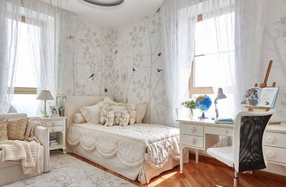 Этот вариант оформления можно заслуженно считать беспроигрышным. Он очень прост в исполнении, одинаково подходит мальчикам и девочкам, а также позволяет создать максимально светлую и комфортную комнату. Преобладающий цвет – белый, который прекрасно сочетается с любыми аксессуарами, которые в свою очередь можно легко заменить, если вкусы и предпочтения вашего ребёнка изменились.