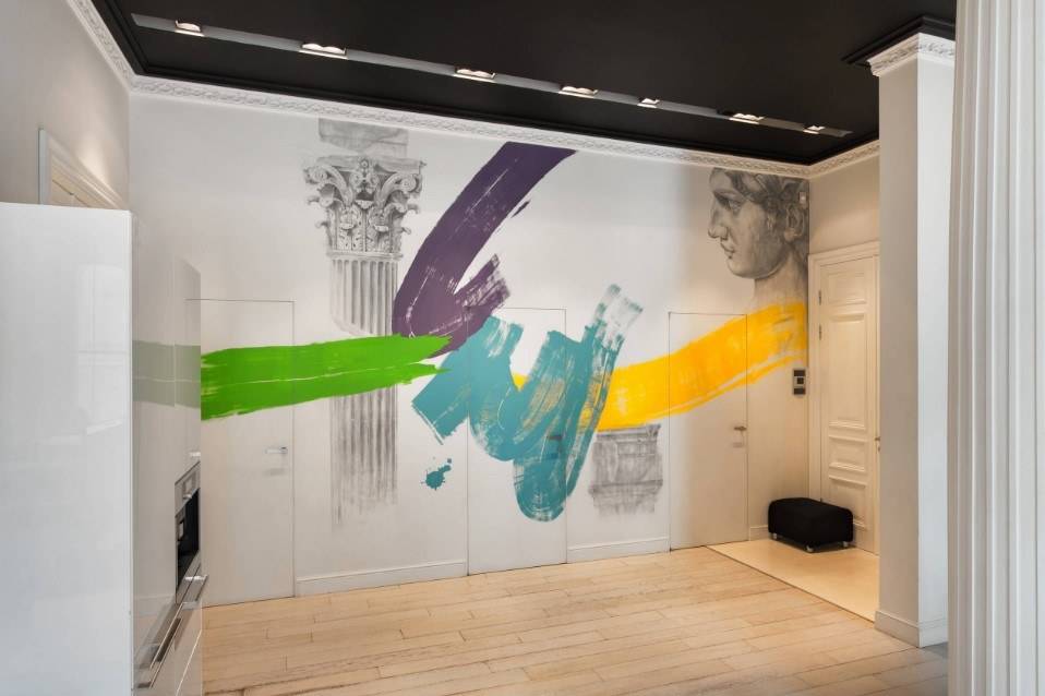 Какая отделка стен будет в вашем доме, напрямую зависит от стилевого направления выбранного интерьера. Современные обои могут изготавливаться на основе дерева или пластика, что в дальнейшем даже позволяет подвергать их влажной обработке. Можно подобрать вариант с рисунком, который освежит стены или под покраску. Кстати в этом сезоне очень красиво смотрится сочетание нескольких видов такого материала одновременно. Например, одна стена оклеена обоями с рисунком, а на другой интерьер дополняют однотонные обои. В продаже также имеется большой выбор 3D-панелей, которые смотрятся не менее привлекательно. Оригинальным решением для оформления стен станут фрески с золотистыми деталями, лепнина и разнообразные вариации зеркал. При оформлении интерьера в стилистике лофт, при помощи специальной доски на стенах создают эффект кирпичной кладки или небрежной штукатурки, что и является главной особенностью этого стиля.
