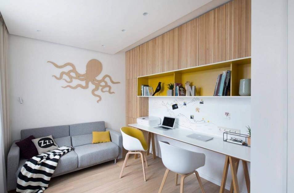 Помимо шкафов для одежды и полок, в детской обязательно должен быть письменный или компьютерный стол, где ребёнок буде заниматься и набираться знаний. Именно поэтому границы между стилевыми решениями размыты и одно направление может смело дополнять другое. Но, несмотря на это, некоторые интерьерные решения, всё же, остаются наиболее актуальными: