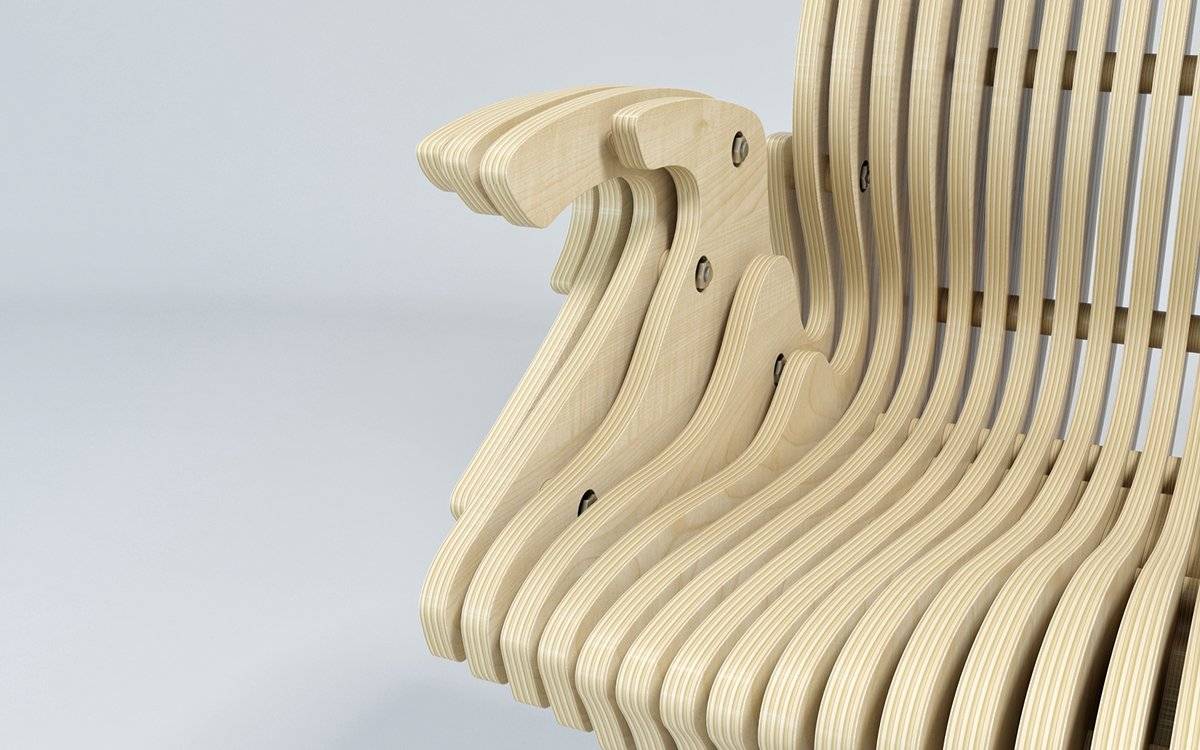 4. Кроме четырёх изогнутых ножек из фанеры на каждое кресло пошло по шестнадцать реек и две упорные перемычки.