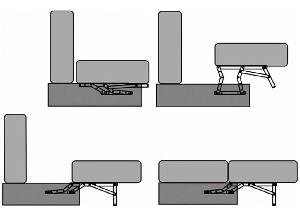 - Клик-кляк. Основная часть поднимается, то и есть снимается блокировка и образуется цельный матрас.