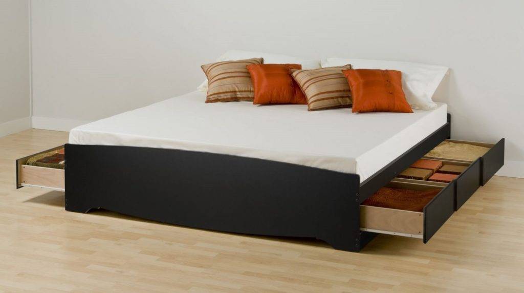 У многих есть требования, чтобы спальная комната была не только местом отдыха, но и хранения постельного белья и прочих вещей. Особенно актуально это в малогабаритных квартирах. Зачастую ниши для хранения устанавливают прямо в кровати. В зависимости от размера спального места в наличии может быть один-два выдвижных или стационарных ящика. Если это стационарный вариант, то кровать будет подниматься со стороны изножья. Конечно же, такие модели будут стоить намного дороже обычных.