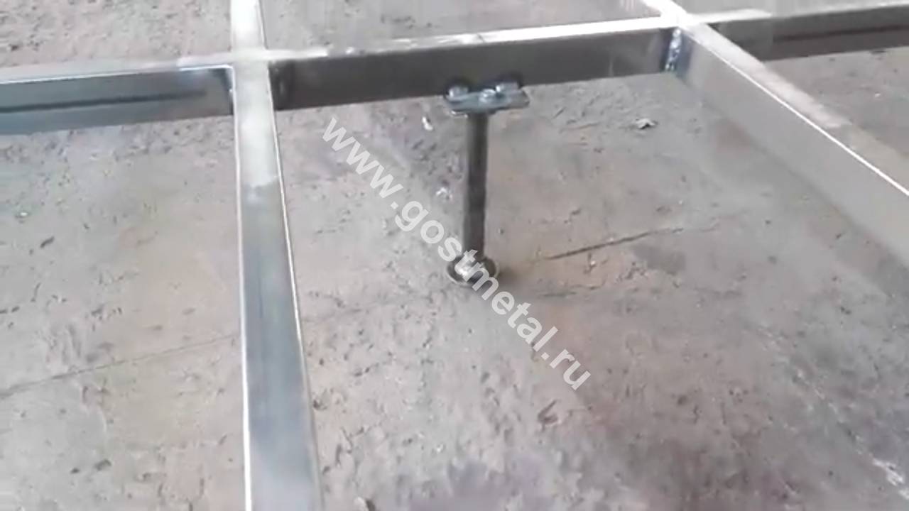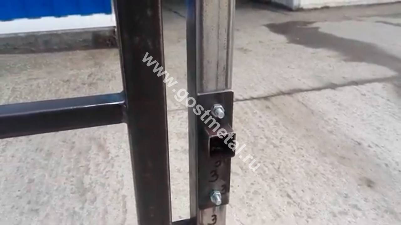 Чтобы прикрепить готовые фермы из профтрубы и полосы к ножкам, необходимо фасонными болтами прикрутить отрезок стального листа с встречным выступом.