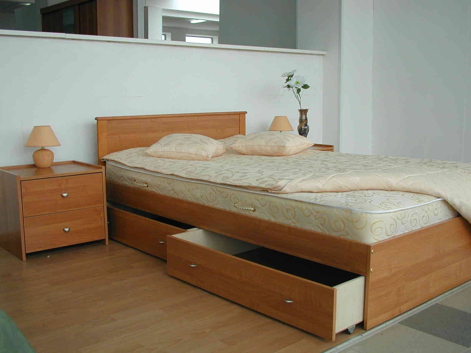 По сути, сделать схему или чертеж кровати-подиума с выдвижными ящиками можно по аналогии с обычной двуспальной кроватью с ящиками