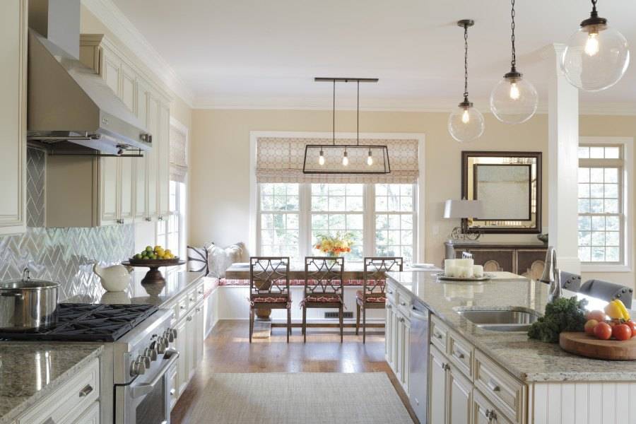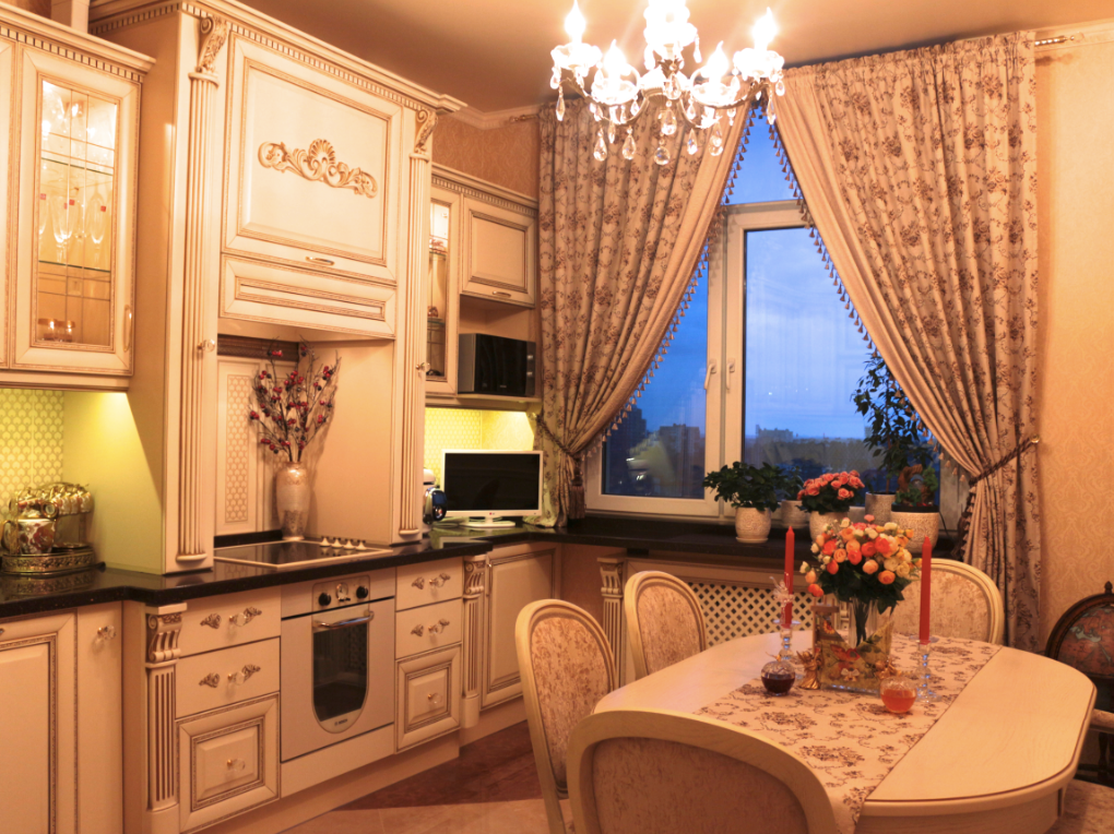 Берём нейтральные элементы из классических стилей (фрезеровка фасадов, декоративные ручки, замысловатые светильники), но всё остальное спокойно используем современное. Такой подход широко используется в США и там это считается традиционным стилем.