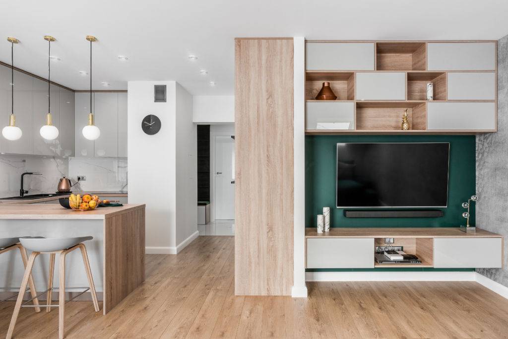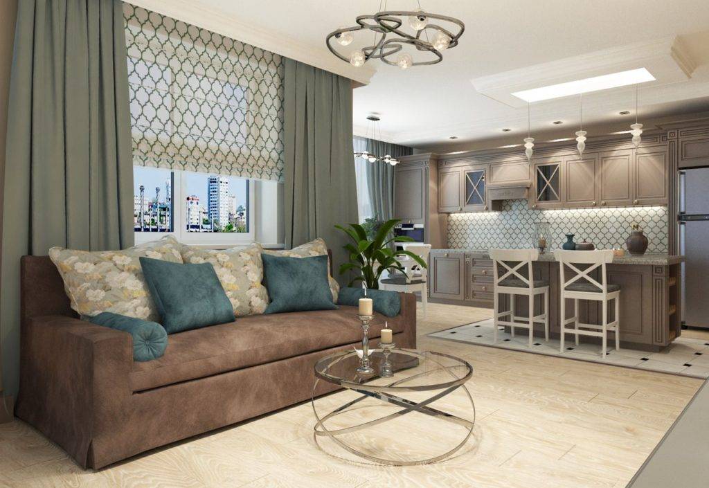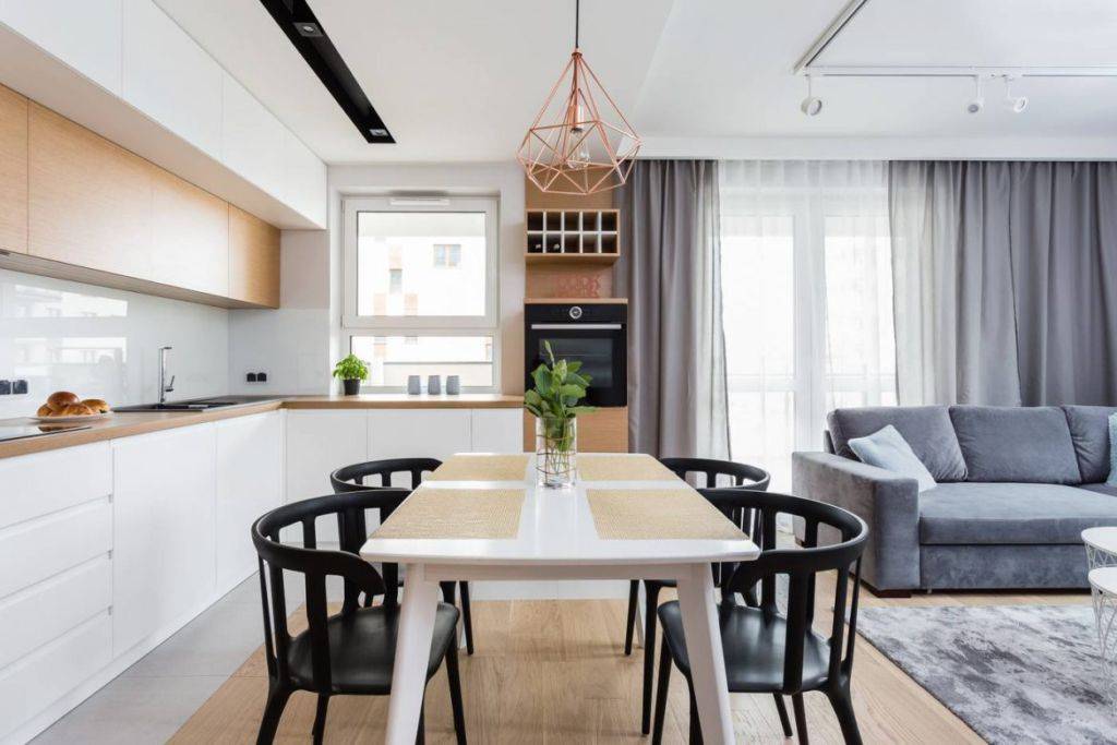 - Отказ от комнаты. Совмещая кухню с другим помещением, вы уменьшаете количество комнат в своем доме (квартире). А если речь идет об «однушке», то вовсе можно считать, что вся квартира становится практически единый помещением.