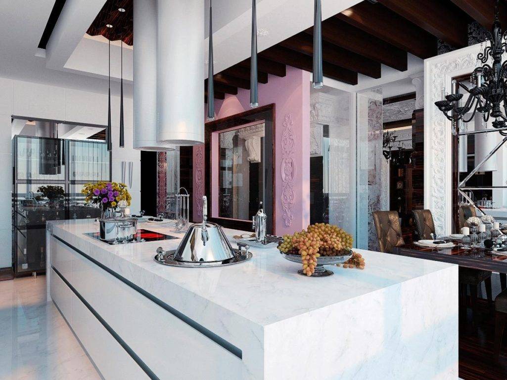 Эклектика, это смешение близких по своему духу стилей – барокко и модерна, ампира и классики. Такое сочетание позволяет создавать очень красивые и функциональные интерьеры. Для кухонных пространств такие решения очень подходят, так как основными принципами формирования окружения здесь станут: