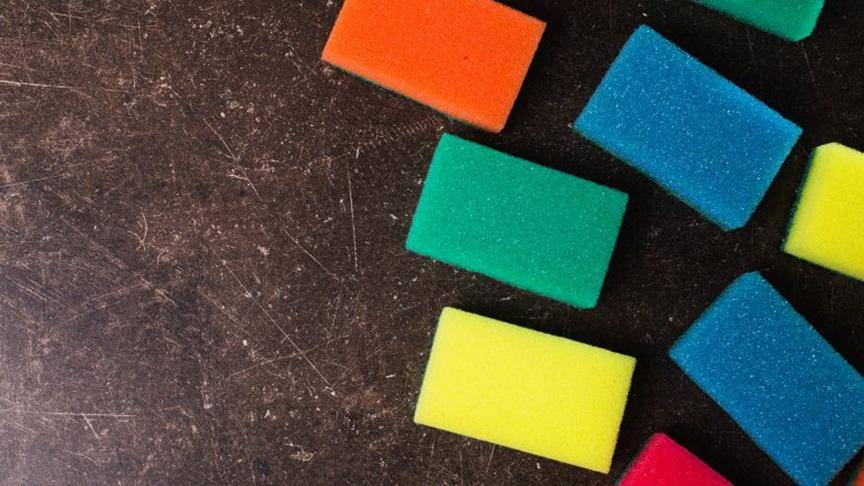 Перед использованием губка должна подвергнуться гигиенической обработке. Лучше всего запустить ее в стиральную машину с горячей водой и эффективным отбеливателем. После этого можно почистить ею мусорное ведро, стены в кладовой и т. д.