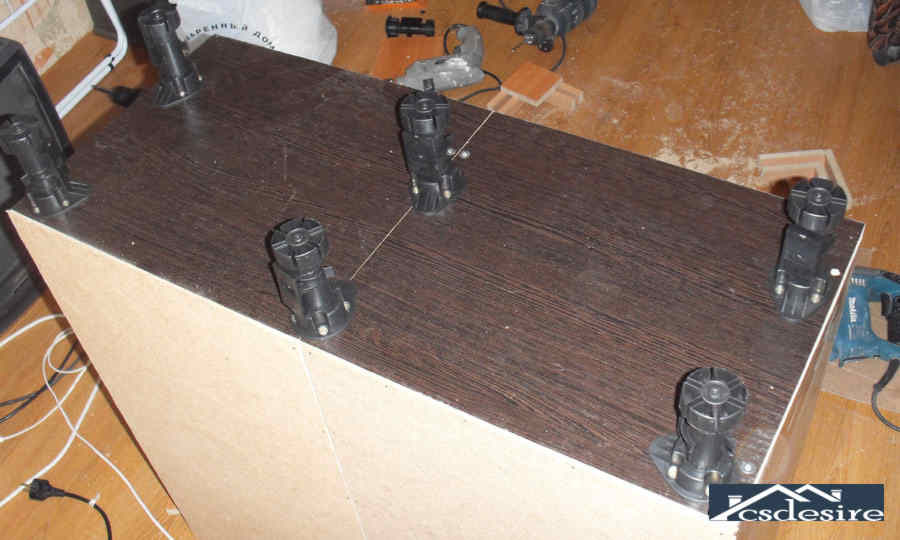 Рис.9. Регулируемые ножки. Первый ряд ножек должен быть смещен на 7-10 см вглубь шкафа.