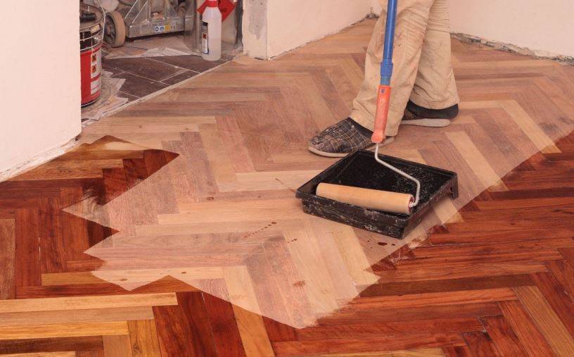 Как лакировать паркет: первый слой всегда наносится валиком или широким шпателем