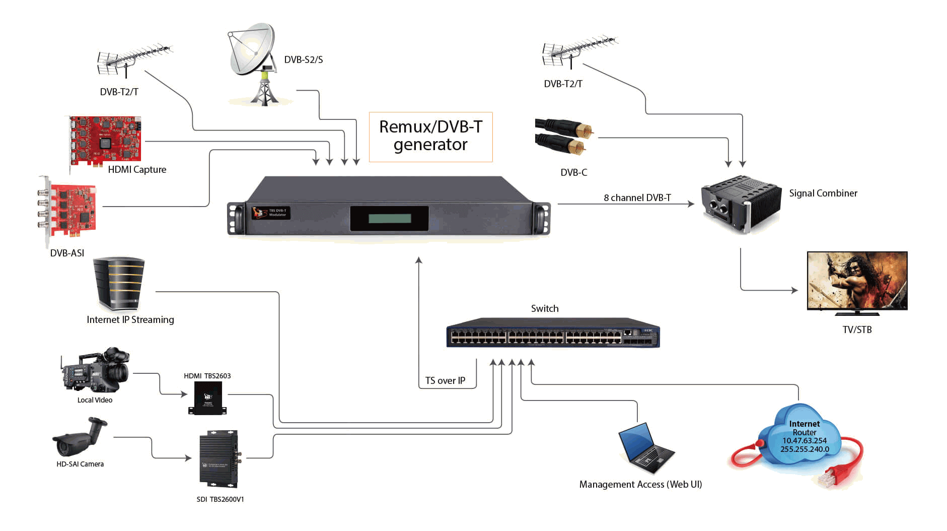 Модулятор работающий со стандартами IPTV, спутникового тв – DVB S, S2, T, T2