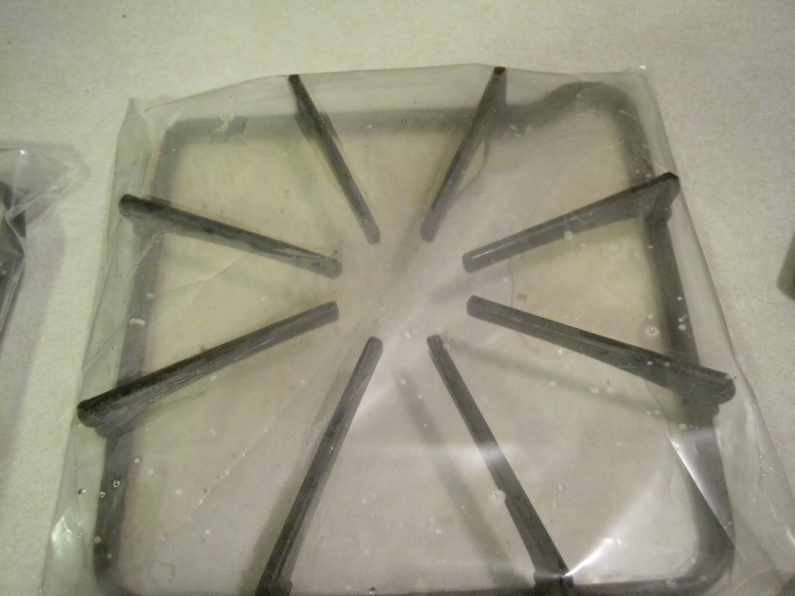 Если жир успел сильно въесться, решётку на газовой плите можно очистить следующим образом: