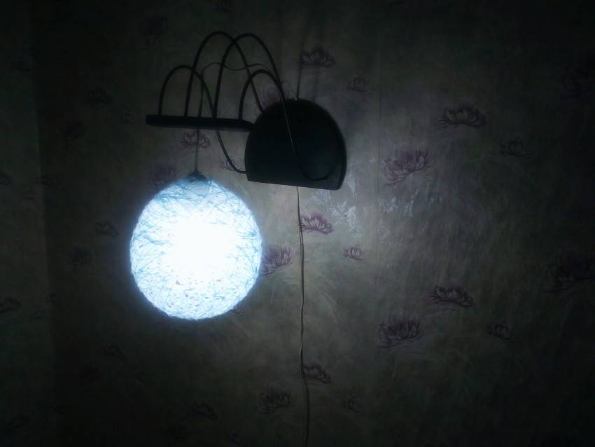 По такому же принципу создают плафон, моделью для которого служит пластиковая бутыль. Однако нитки для него берут более плотные. Роль вазелина в этом случае отводится скотчу. Форма у такого абажура отличается большей оригинальностью. В остальном различия минимальны.