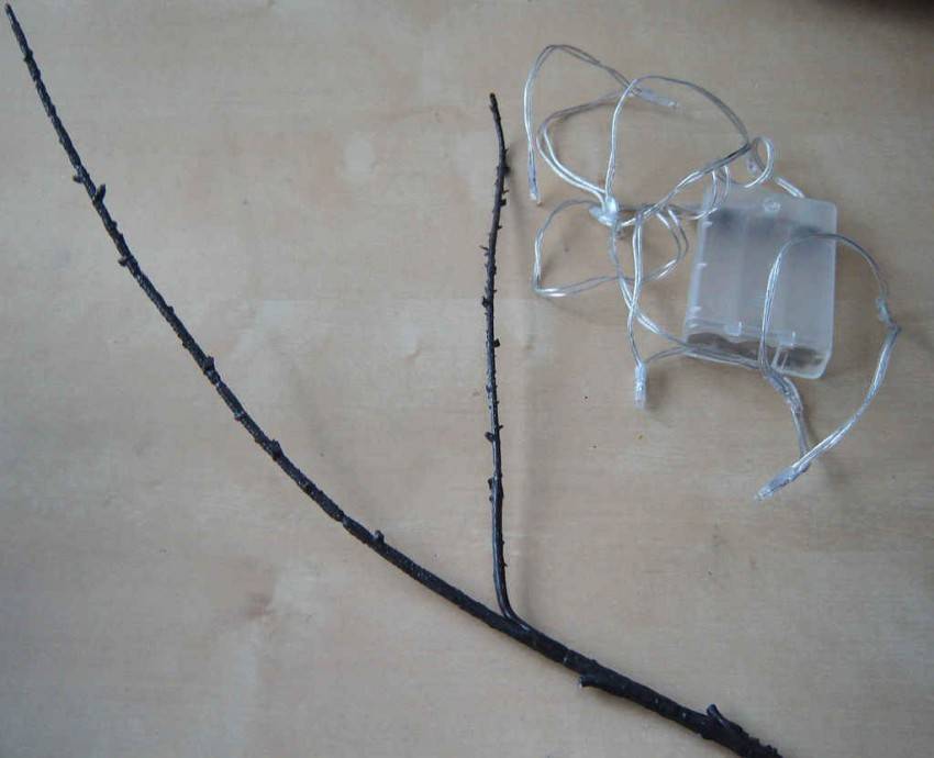 Для декора светильников можно использовать все сподручные материалы. Даже веточки, как на фото.