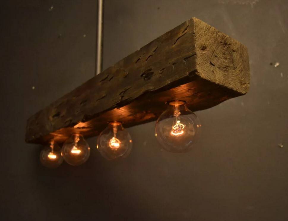 Пиломатериал применяют и для подготовки оригинальных светильников. Однако из-за его лёгкой воспламеняемости, дерево до начала работы пропитывают антисептиками. Специальный раствор также предотвращает растрескивание, деформацию и повреждение вредителями. Светильники из этого материала не стоит устанавливать на кухнях и в ваннах, где повышенная влажность. Срок эксплуатации сильно сокращается.